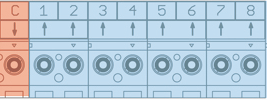 Do obsługi sygnałów wejściowych i wyjściowych służy płytka rozszerzeń CSP-IO8, znajduje się ona w górnej, tylnej części obudowy.