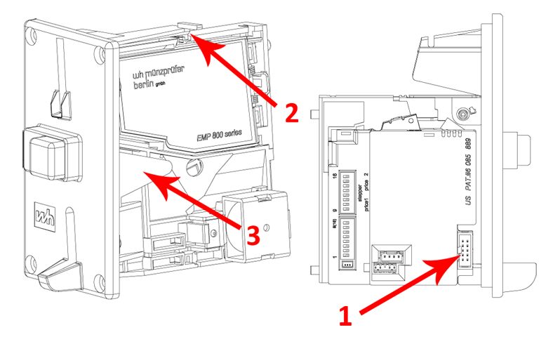Do wyłączenia z obsługi poszczególnej monety służą przełączniki znajdujące się na boku wrzutnika monet.
