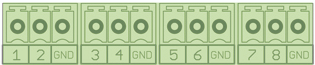 Do kontroli otwarcia i nie domknięcia drzwi służą trzy pierwsze wejścia. Podłączamy kolejno 1-GND, 2-GND, 3-GND do styków przełączników wyposażenia elektrozamka lub kontaktronów.