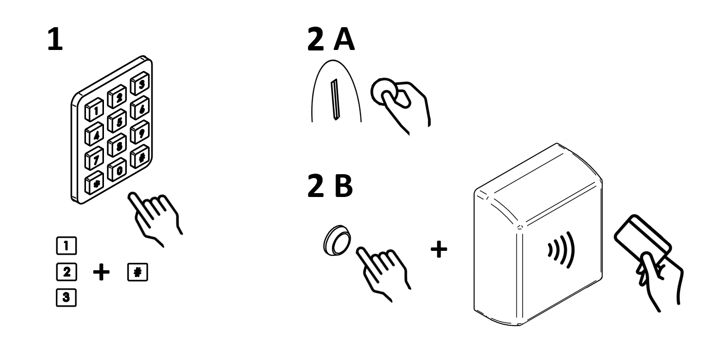 Aby użyć kodu PIN administratora wybierz na klawiaturze dwa razy # # wpisz cyfry kodu i zatwierdź #.